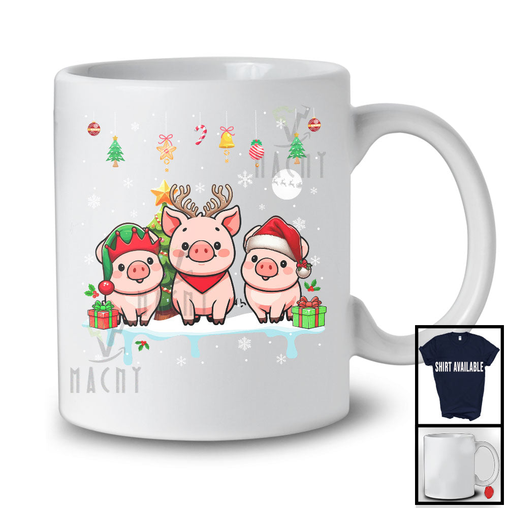 Three Reindeer Santa Elf Pig; Cheerful Christmas Lights Pig; X-mas Animal Lover T-Shirt