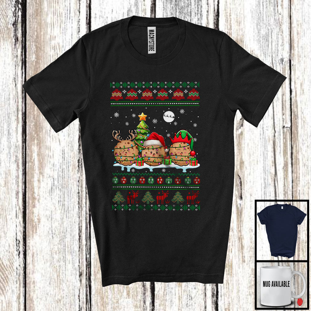 Three Santa Elf Reindeer Cookie; Cheerful Christmas Tree Sweater Snow; Family Group T-Shirt