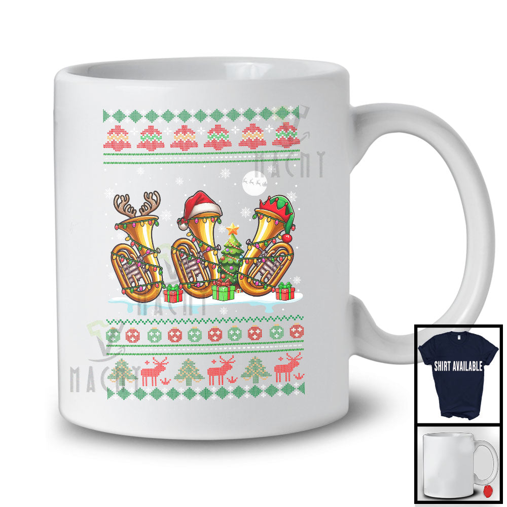 new MacnyStore - Three Santa Elf Reindeer Tuba; Cheerful Christmas Tree Sweater Snow; Musical Instruments Player T-Shirt – Macnystore