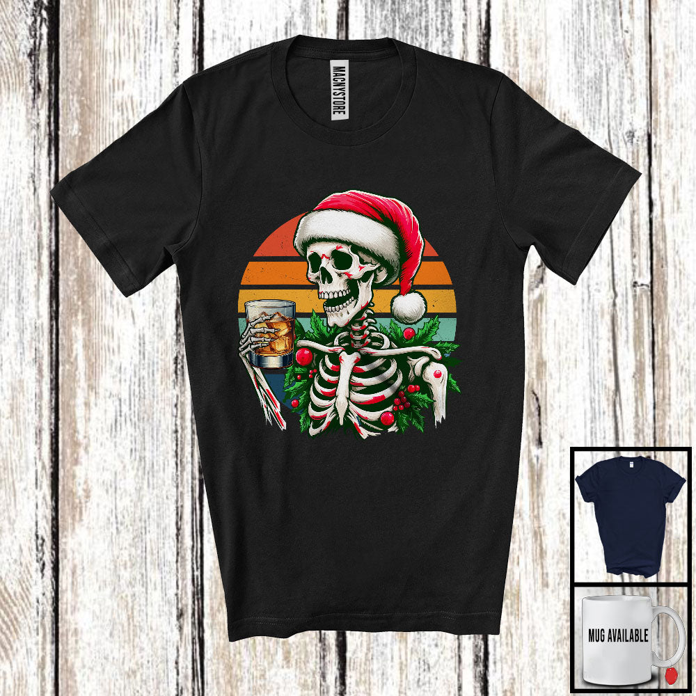 Vintage Retro Santa Skeleton With Whiskey Glass; Sarcastic Christmas X-mas Drinking Drunker T-Shirt