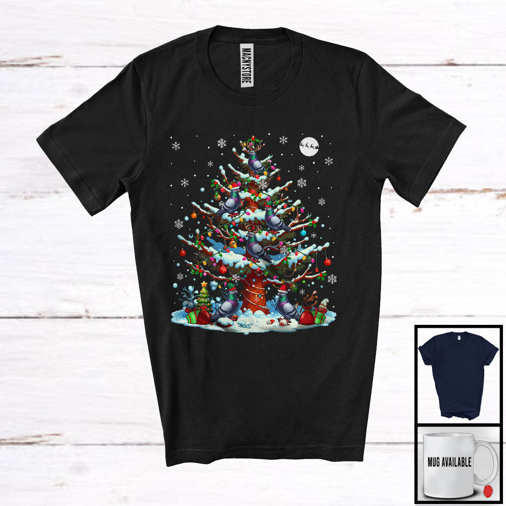 X-mas Pigeon Reindeer Santa Elf On Tree; Amazing Christmas Pigeon Bird Snowing; Animal Lover T-Shirt