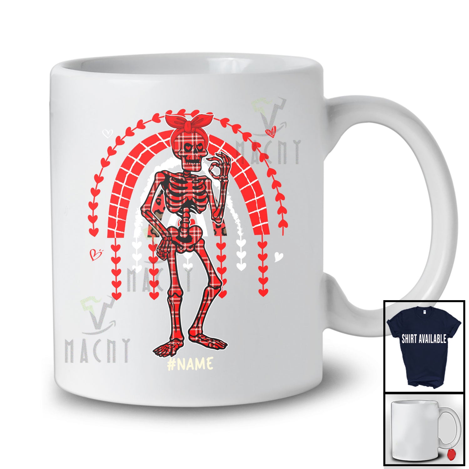 Personalized Custom Name Skeleton Red Plaid Headband; Joyful Valentine Rainbow Hearts T-Shirt