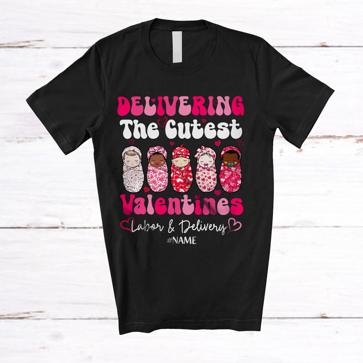 new MacnyStore - Personalized Delivering The Cutest Valentines; Lovely Hearts Custom Name Labor And Delivery Nurse T-Shirt – Macnystore