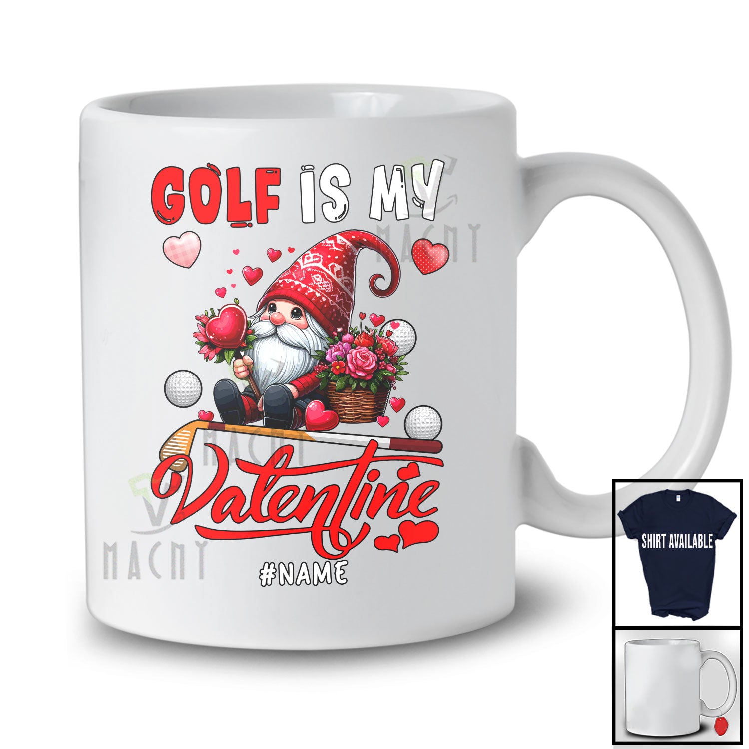 This Personalized Golf Is My Valentine; Adorable Custom Name Gnome Hearts; Sport Player Team T-Shirt is great idea gift for your family, friends in this birthday, christmas, mother's day, father's day, patrick's day or any holiday.