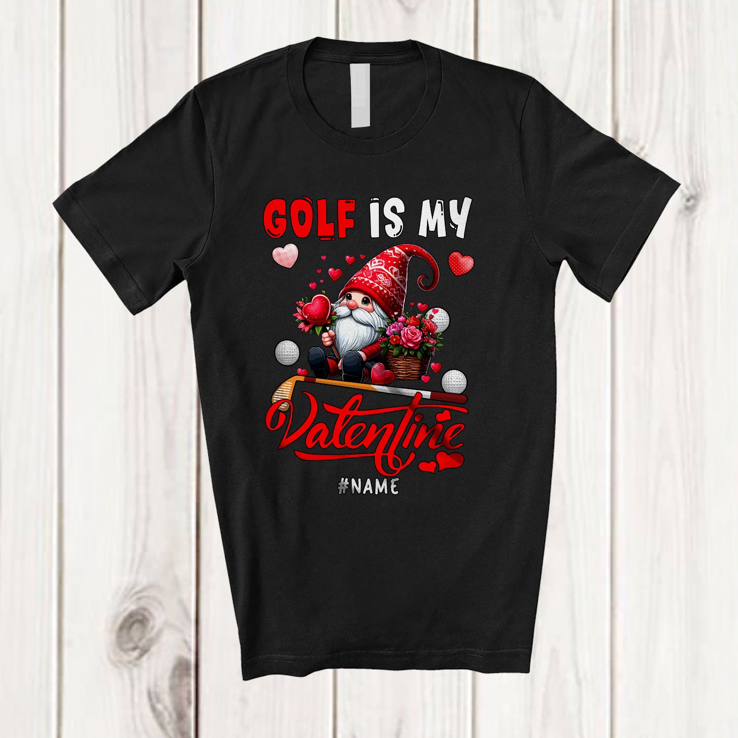 Personalized Golf Is My Valentine; Adorable Custom Name Gnome Hearts; Sport Player Team T-Shirt