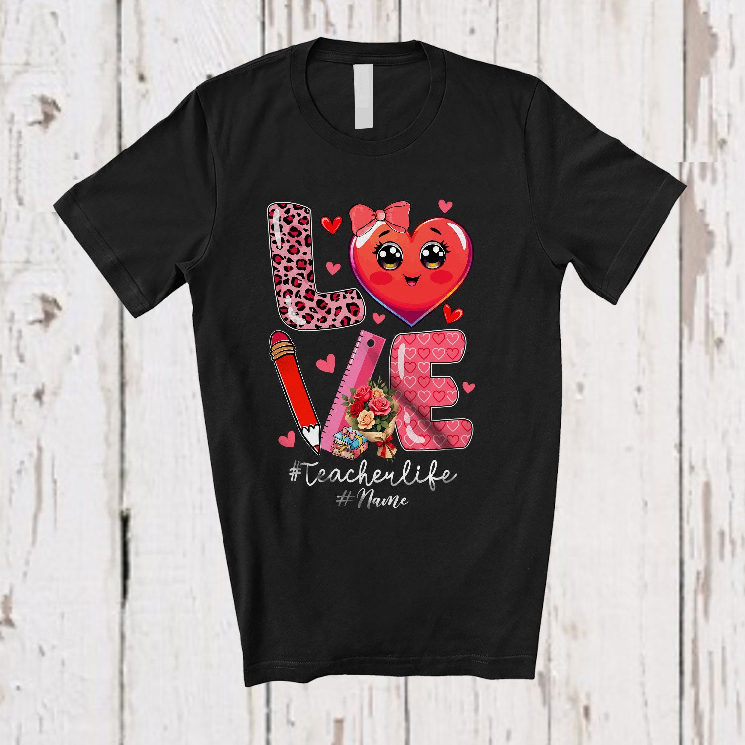 Personalized LOVE Teacher; Custom Name Cute Heart Teacher Proud Valentine Squad T-Shirt