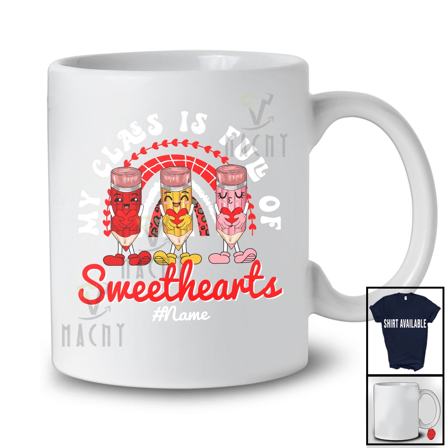 new MacnyStore - Personalized My Class Full Of Sweethearts; Lovely Valentine 3 Pencils Rainbow; Custom Name Teacher T-Shirt – Macnystore