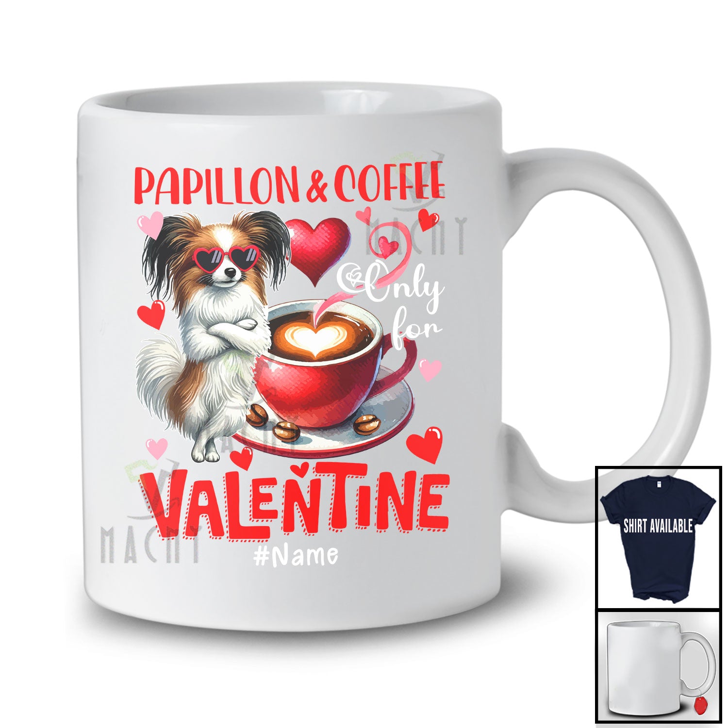 This Personalized Papillon And Coffee Only For Valentine; Lovely Custom Name Single; Animal T-Shirt is great idea gift for your family, friends in this birthday, christmas, mother's day, father's day, patrick's day or any holiday.