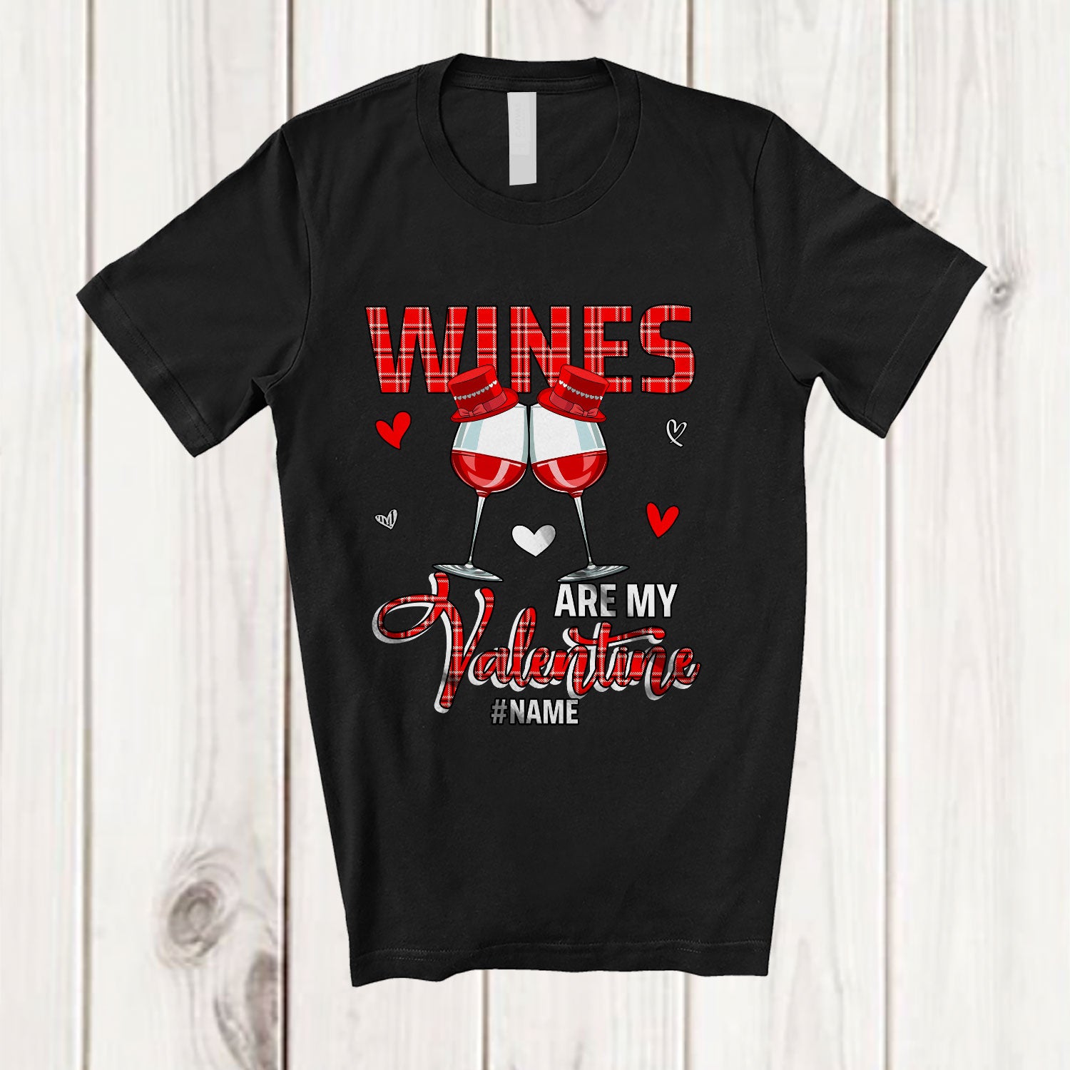 Personalized Wines Are My Valentine; Amazing Plaid Custom Name Couple Wine; Drinking Drunker T-Shirt. This cotton t-shirt is a durable staple product with a classic fit. One of the most popular items, it has a relaxed style made for everyday and casual wear.