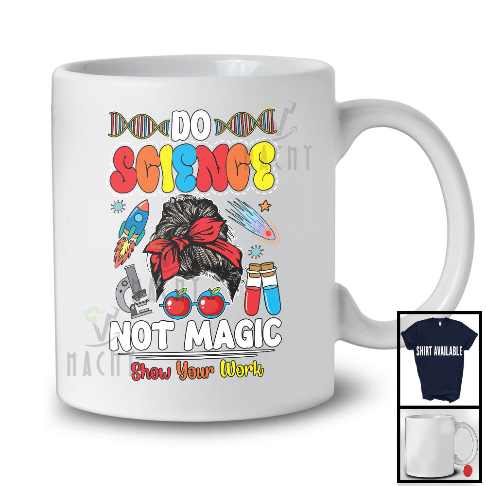 new MacnyStore - Do Science Not Magic; Colorful Back To School Messy Bun Hair Women; Science Teacher T-Shirt – Macnystore