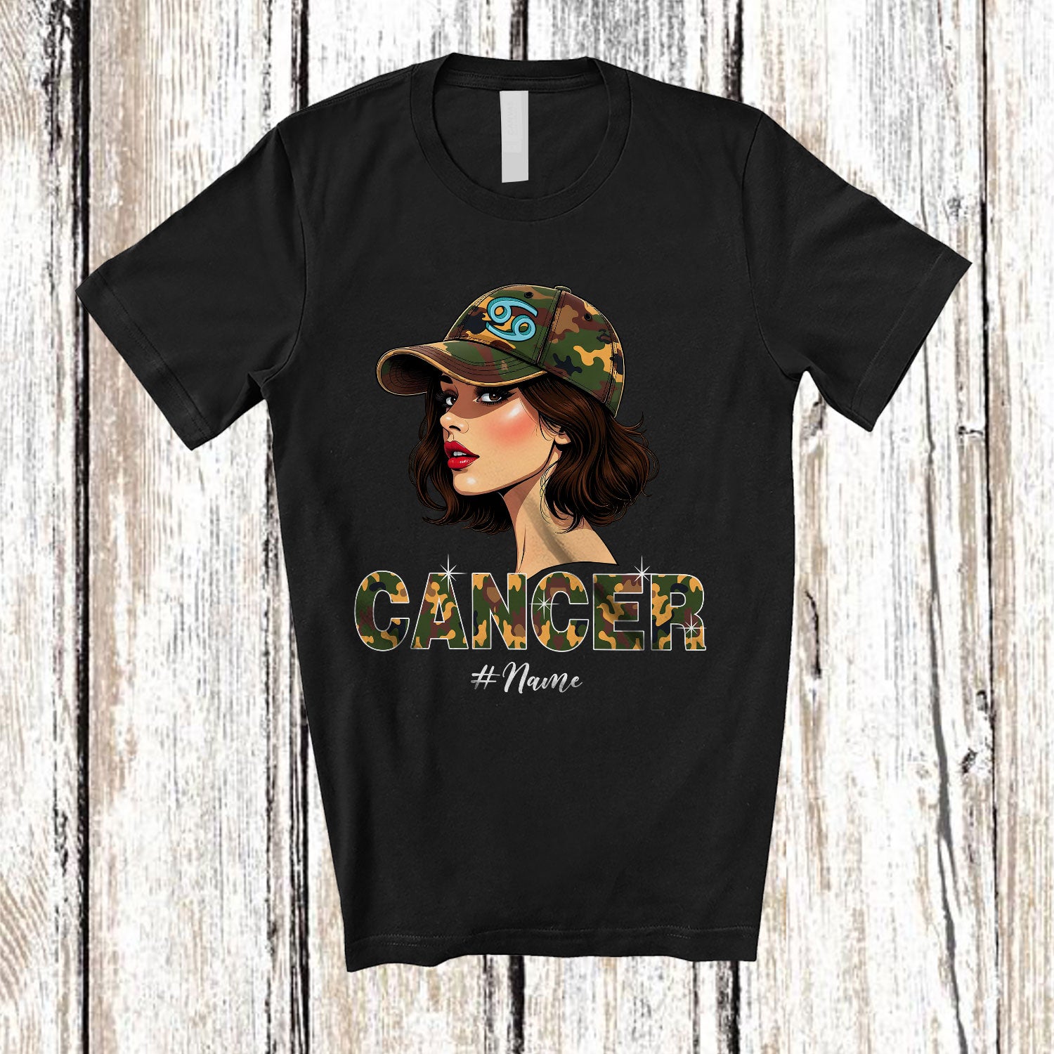 Personalized Custom Name Cancer; Amusing Birthday Camouflage Custom Name Women; Zodiac Sign T-Shirt