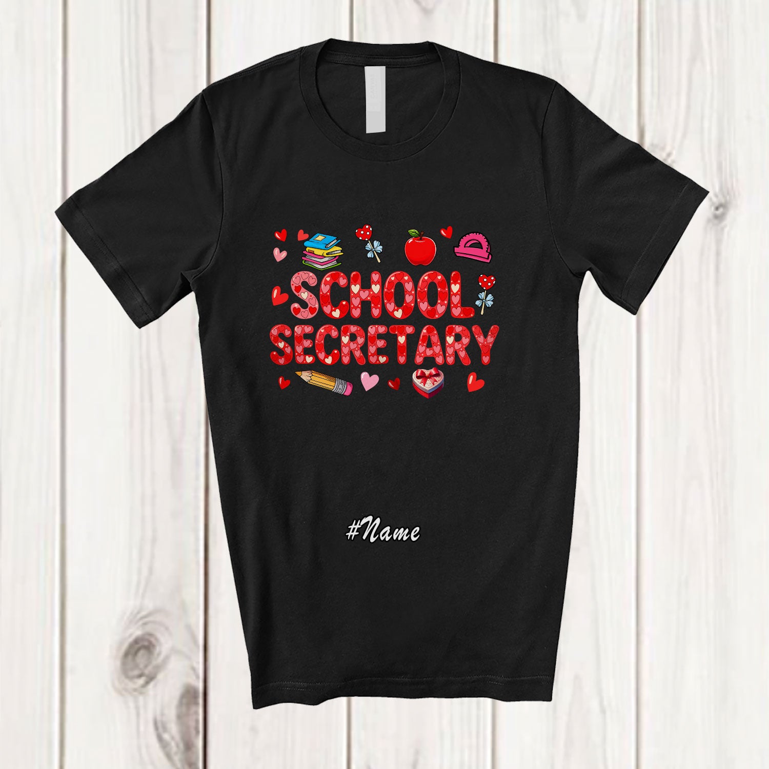 Personalized Custom Name School Secretary; Lovely Valentine Hearts School Tools; Women Jobs T-Shirt