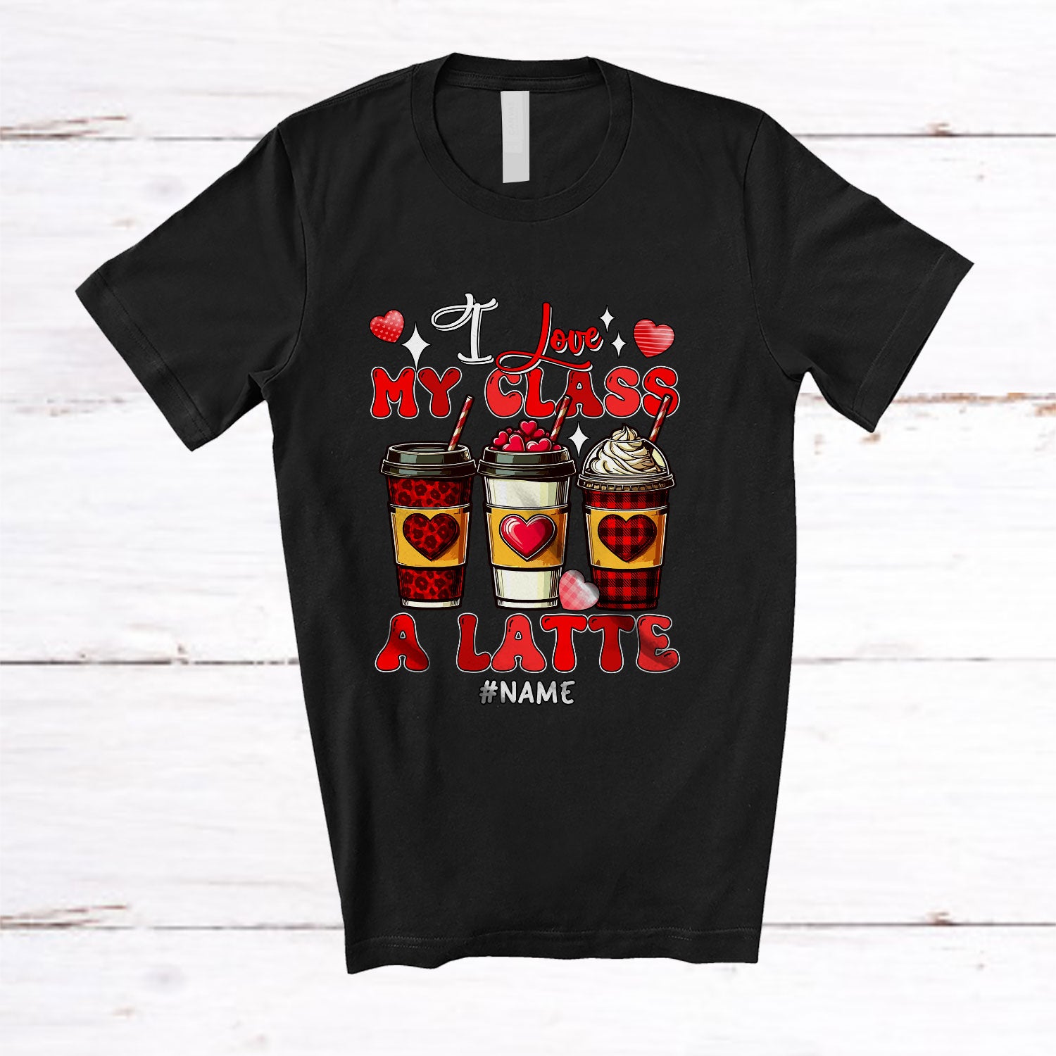 Personalized I Love My Class A Latte; Lovely Valentine Coffee; Custom Name Women Teachers T-Shirt. This cotton t-shirt is a durable staple product with a classic fit. One of the most popular items, it has a relaxed style made for everyday and casual wear.