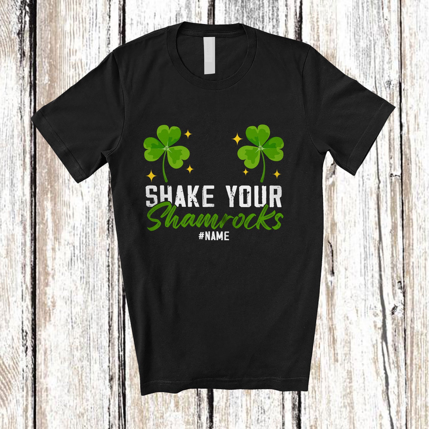 • Personalized Shake Your Shamrocks; Amazing St. Patrick's Day Women Bra; Custom Name Family T-Shirt. This cotton t-shirt is a durable staple product with a classic fit. One of the most popular items, it has a relaxed style made for everyday and casual wear.
