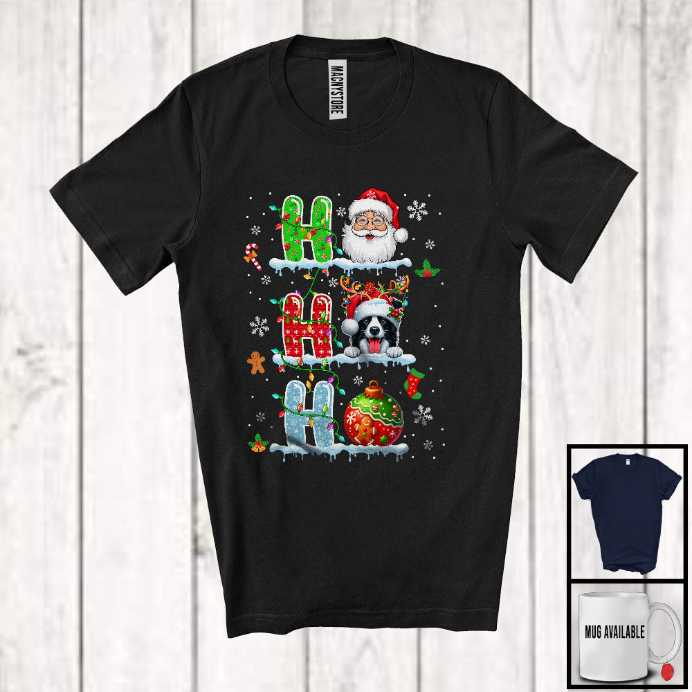 This 3Ho; Adorable Christmas Ornaments Santa Santa Border Collie; Snowing X-mas Family Group T-Shirt is great idea gift for your family, friends in this birthday, christmas, mother's day, father's day, patrick's day or any holiday.