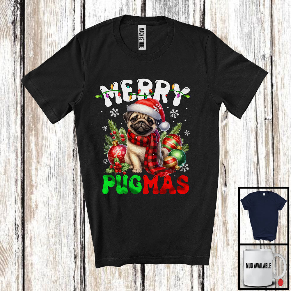 new MacnyStore - Merry Pugmas; Joyful Christmas Santa Pug With X-mas Lights Ornament; Family Group T-Shirt – Macnystore