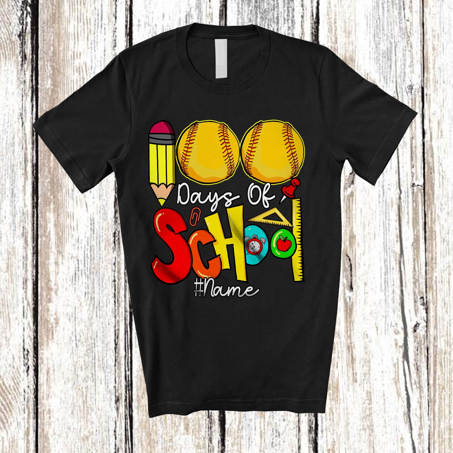 • The Personalized 100 Days Of School; Colorful Custom Name Softball Player Team; Students Teacher T-Shirt is the product you didn't think you need, but once you have it, something you won't want to live without.
