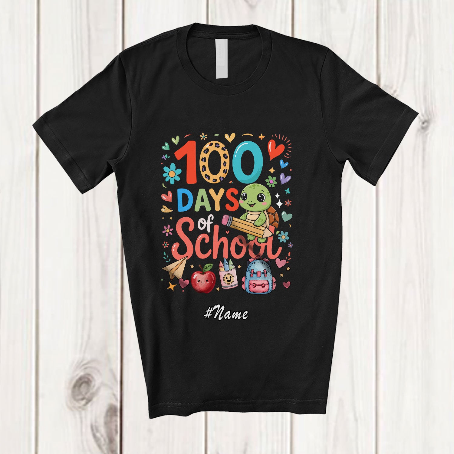 Personalized Custom Name Happy 100 Days Of School; Colorful Turtle 100th Day Teacher Students T-Shirt