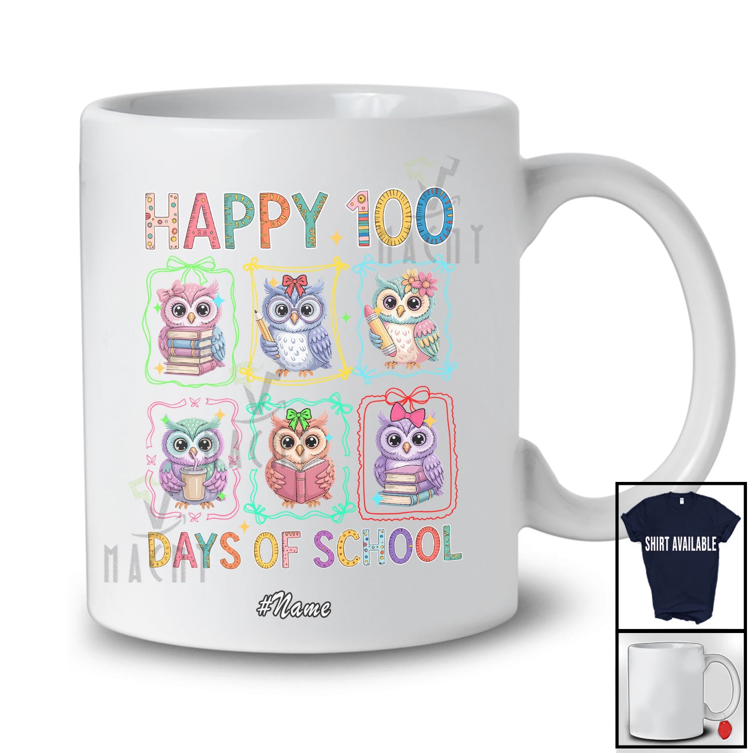 Personalized Custom Name Happy 100 Days Of School; Lovely Owl Reading Books Studying T-Shirt