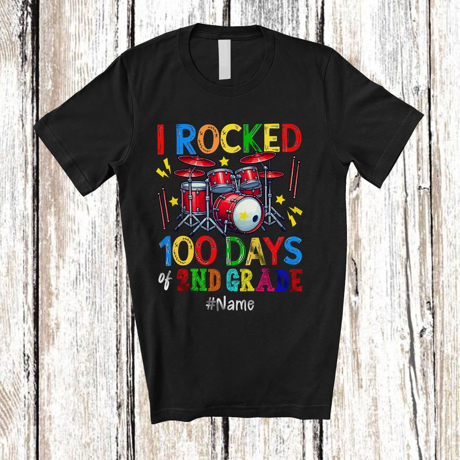Personalized I Rocked 100th Day of 2nd Grade; Amusing School Drum; Custom Name Drummer T-Shirt