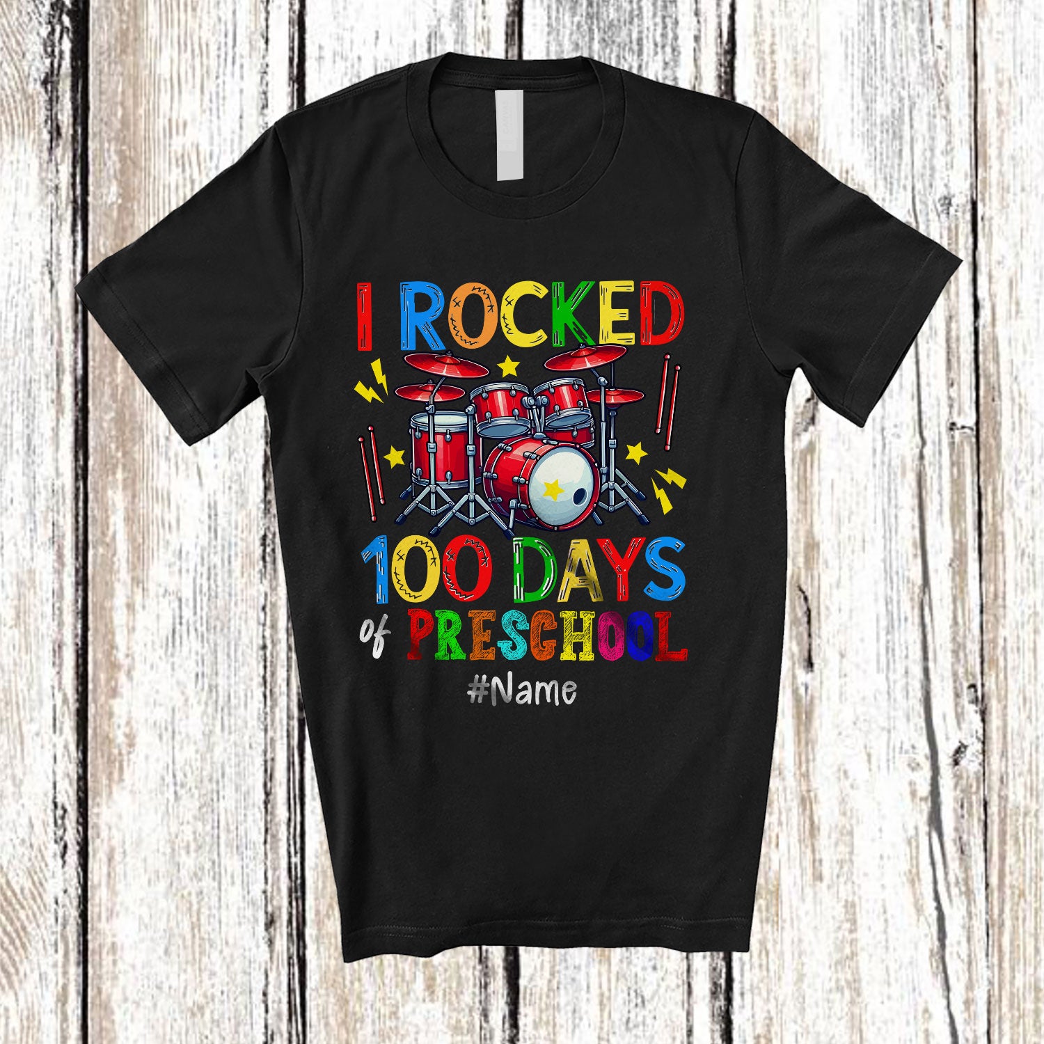 Personalized I Rocked 100th Day of Preschool; Amusing School Drum; Custom Name Drummer T-Shirt