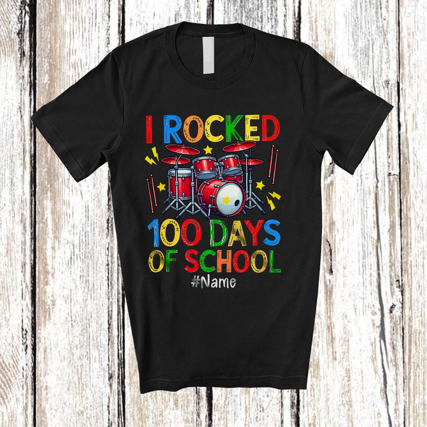 Personalized I Rocked 100th Day of School; Amusing School Drum; Custom Name Drummer T-Shirt
