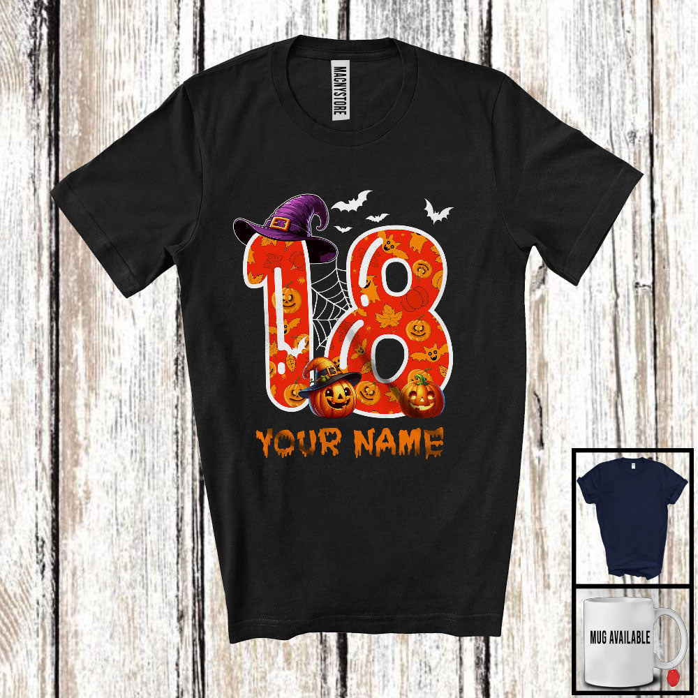 • Personalized Custom Name 18th Birthday; Scary Carved Pumpkin Halloween; Family Group T-Shirt. This cotton t-shirt is a durable staple product with a classic fit. One of the most popular items, it has a relaxed style made for everyday and casual wear.