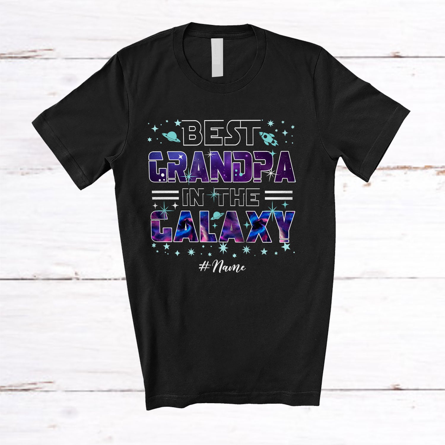• Personalized Custom Name Best Grandpa Galaxy; Joyful Birthday Father's Day Grandpa Space; Family T-Shirt. This cotton t-shirt is a durable staple product with a classic fit. One of the most popular items, it has a relaxed style made for everyday and casual wear.