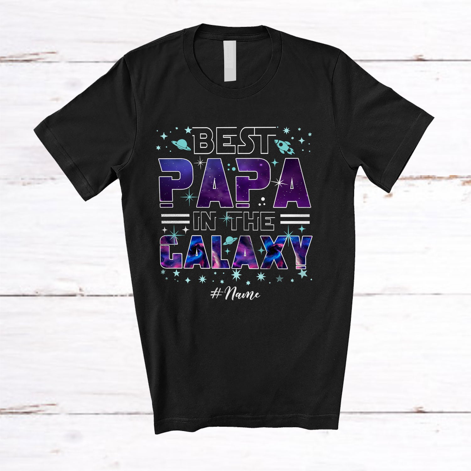 Personalized Custom Name Best Papa Galaxy; Joyful Birthday Father's Day Dad Space; Family T-Shirt. This cotton t-shirt is a durable staple product with a classic fit. One of the most popular items, it has a relaxed style made for everyday and casual wear.