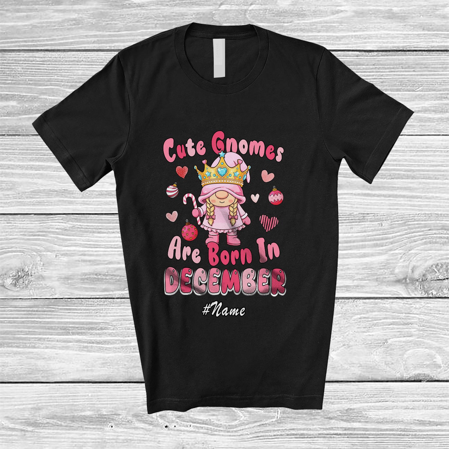 Personalized Custom Name Cutest Gnomes Born In December; Lovely Birthday Christmas Gnomies T-Shirt