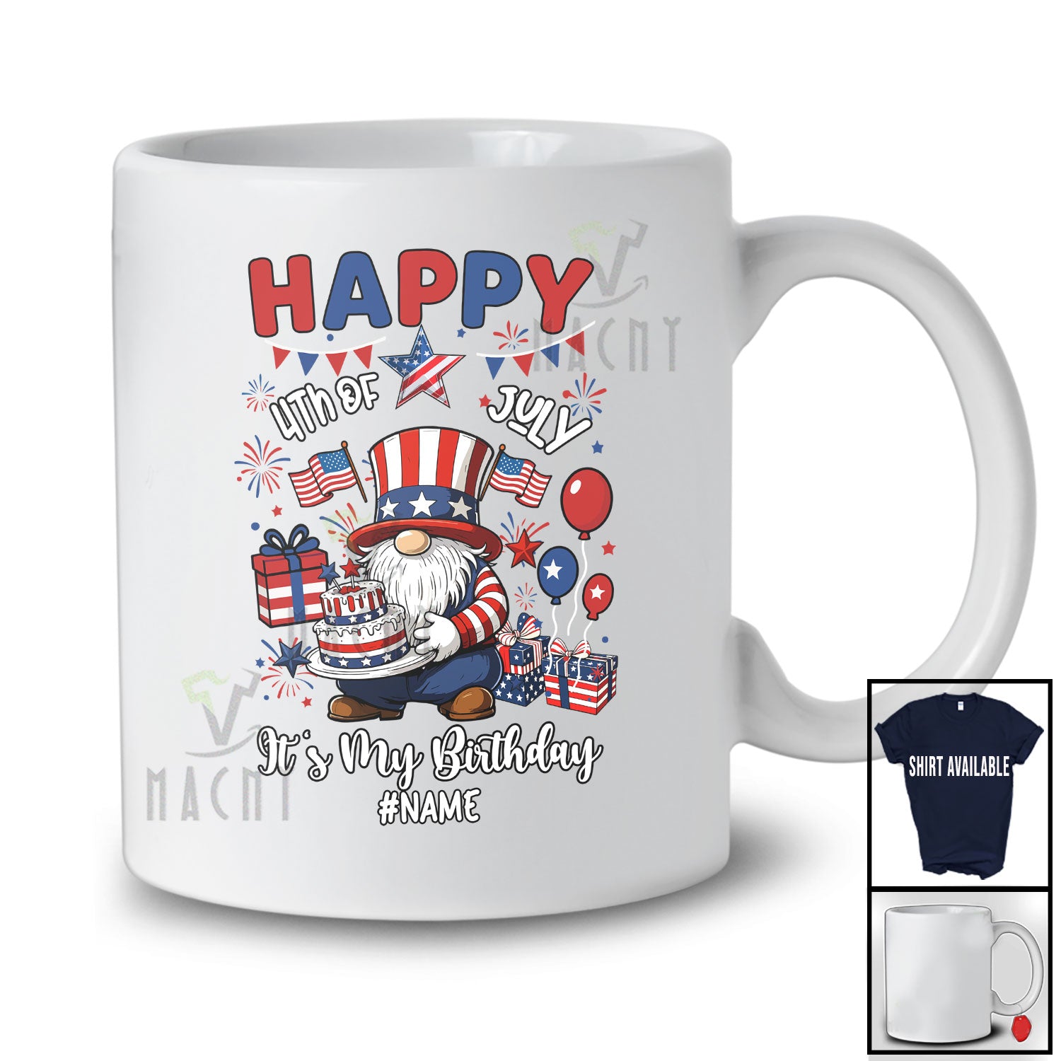 The Personalized Custom Name Happy 4th of July My Birthday; Joyful Gnome Birthday Cake Patriotic T-Shirt is far and away, one of our most popular items. People can't seem to get enough of it.