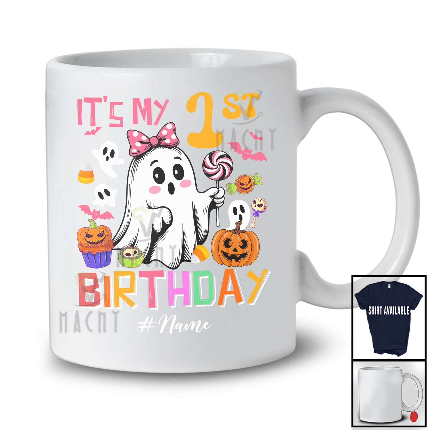 This Personalized Custom Name It's My 1st Birthday; Lovely Halloween 1 Years Old Boo Ghost Pumpkin T-Shirt is great idea gift for your family, friends in this birthday, christmas, mother's day, father's day, patrick's day or any holiday.