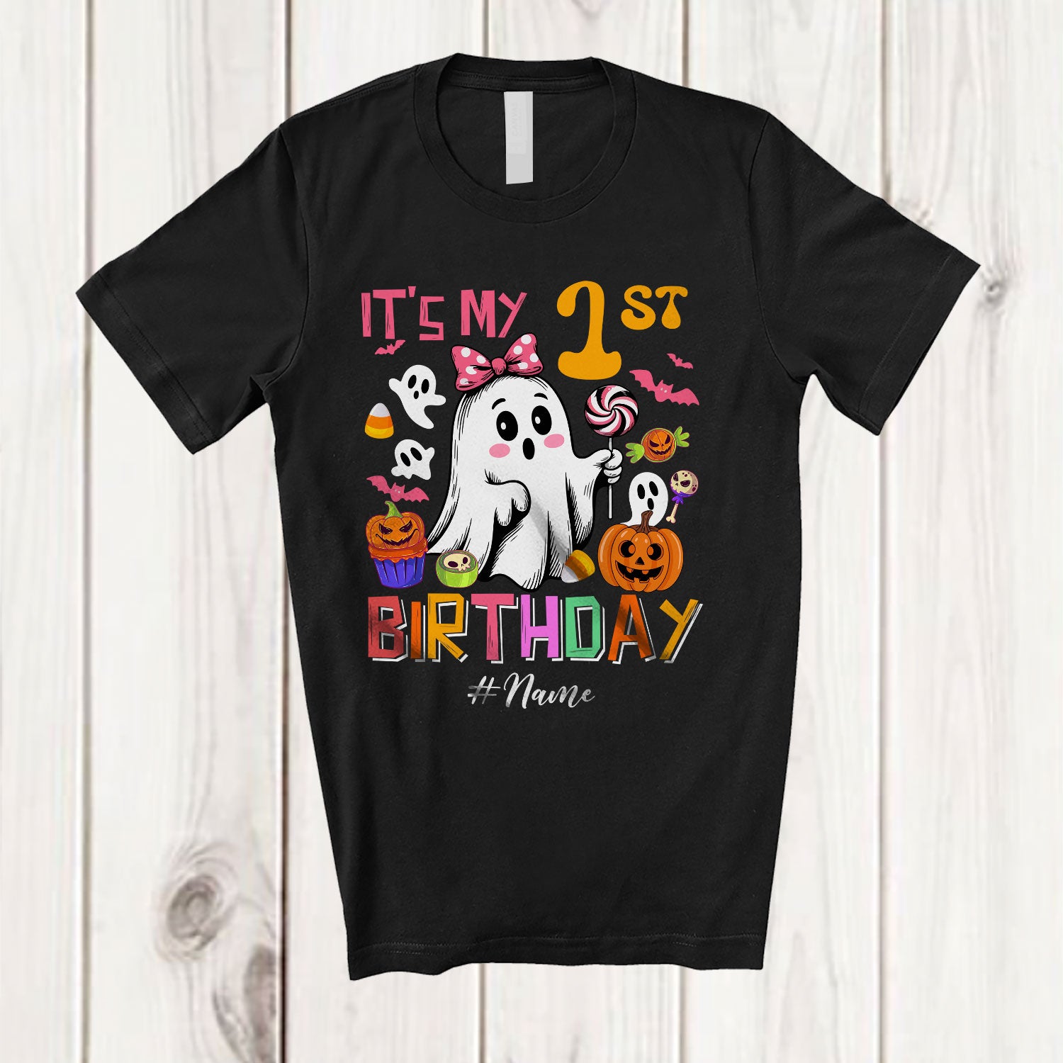 Personalized Custom Name It's My 1st Birthday; Lovely Halloween 1 Years Old Boo Ghost Pumpkin T-Shirt