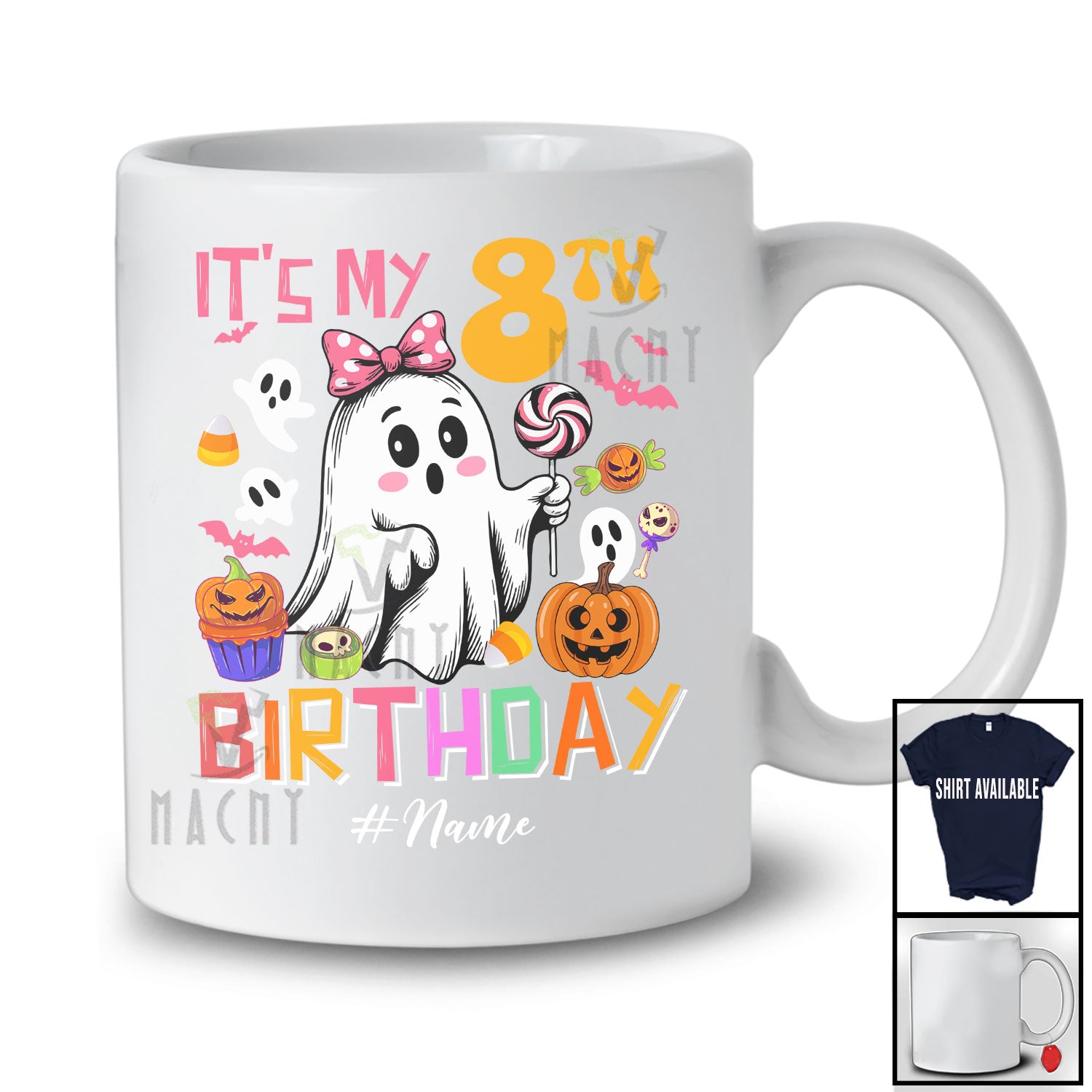 This Personalized Custom Name It's My 8th Birthday; Lovely Halloween 8 Years Old Boo Ghost Pumpkin T-Shirt is great idea gift for your family, friends in this birthday, christmas, mother's day, father's day, patrick's day or any holiday.