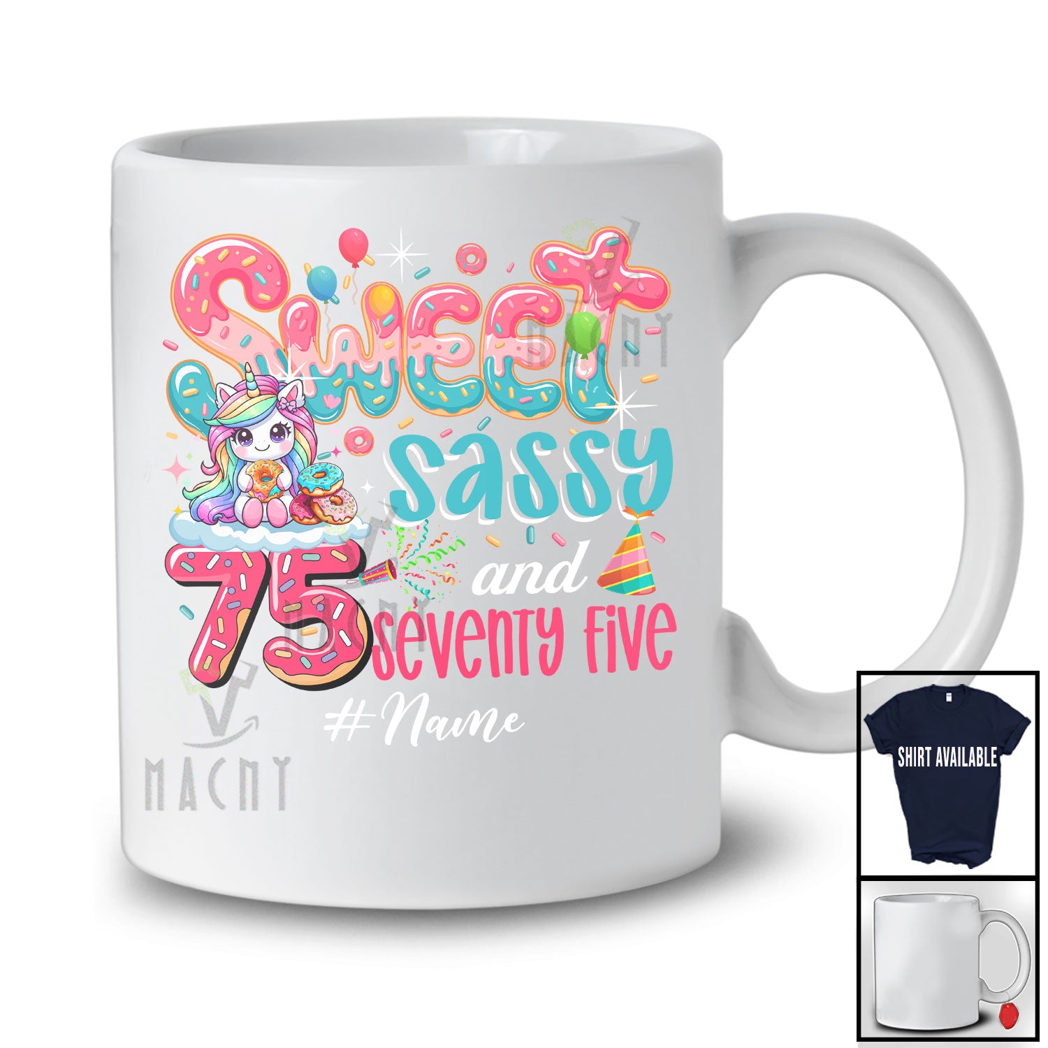 The Personalized Custom Name Sweet Sassy Seventy Five 75th Birthday; Lovely Unicorn Donut Family T-Shirt is a sensational customer favorite, and we hope you like it just as much.