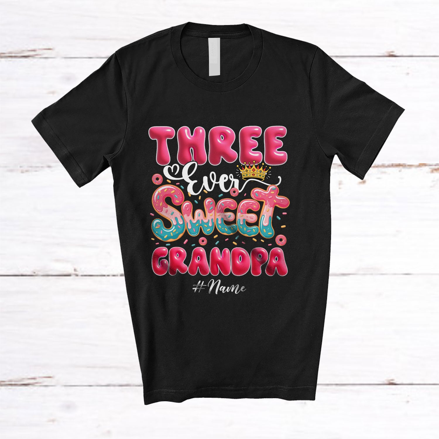 Personalized Custom Name Three Ever Sweet Grandpa; Joyful 3rd Birthday Donut Lover; Girls Family T-Shirt. This cotton t-shirt is a durable staple product with a classic fit. One of the most popular items, it has a relaxed style made for everyday and casual wear.