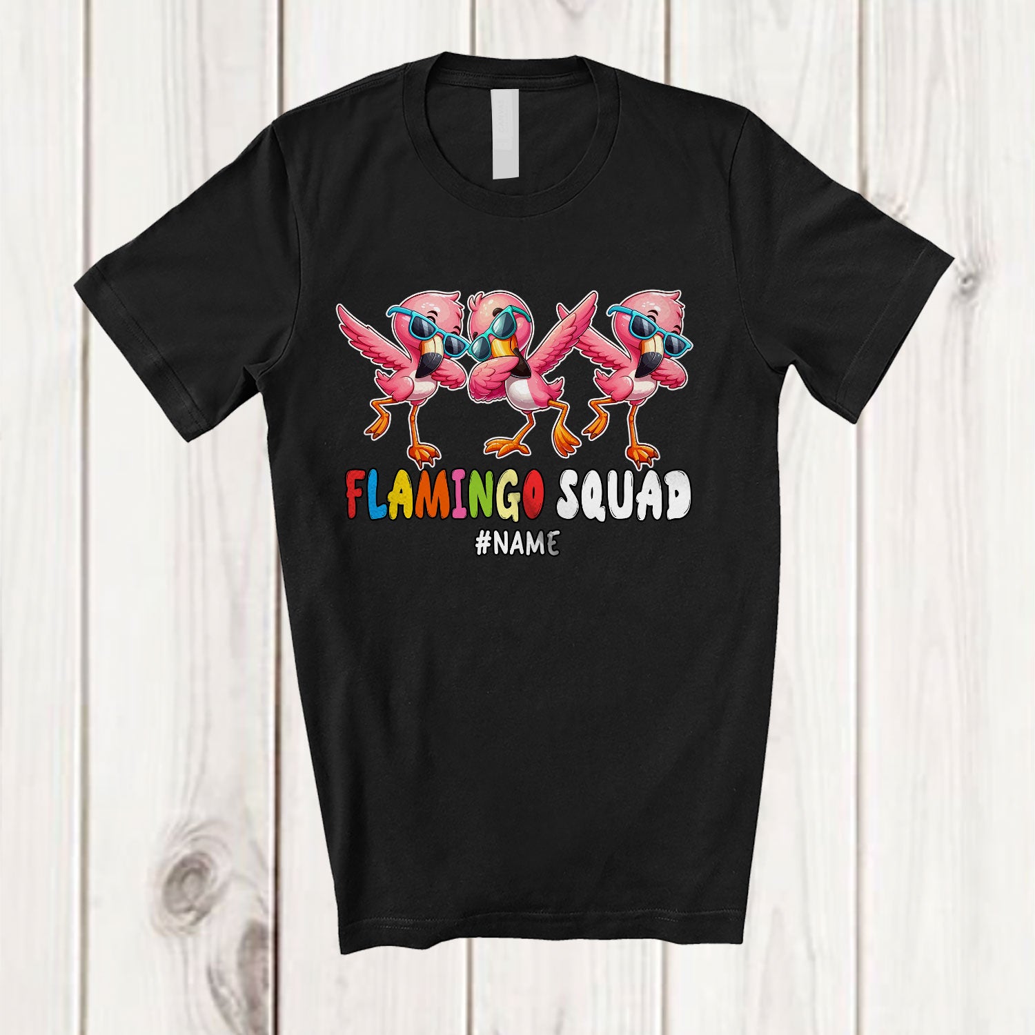 Personalized Flamingo Squad; Joyful Birthday 3 Dabbing Flamingo Sunglasses; Custom Name Family T-Shirt