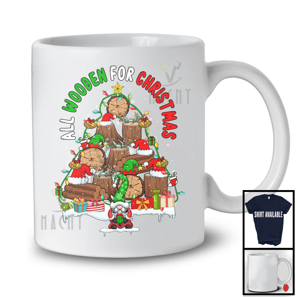 All Wooden For Christmas; Lovely X-mas Lights Gnome Gnomies Lover; Wood Carpenter Team T-Shirt