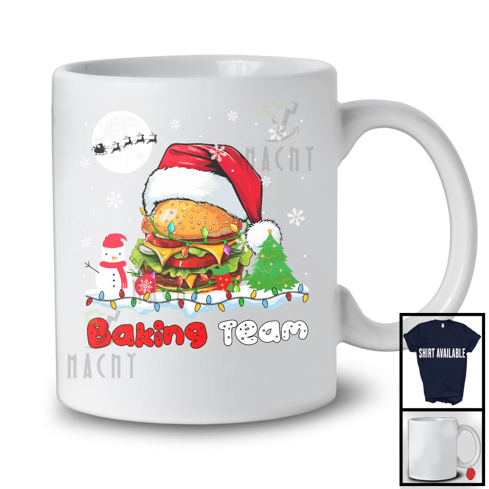 new MacnyStore - Baking Team; Adorable Christmas Hamburger Santa; X-mas Lights Snowing Baker Group T-Shirt – Macnystore