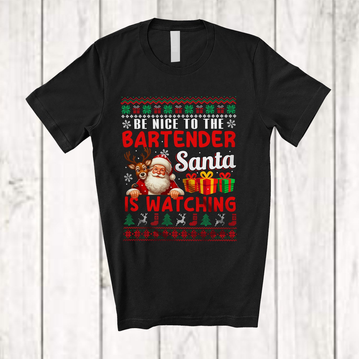Be Nice To The Bartender Santa Is Watching; Amusing Christmas Sweater Santa; Jobs Careers T-Shirt