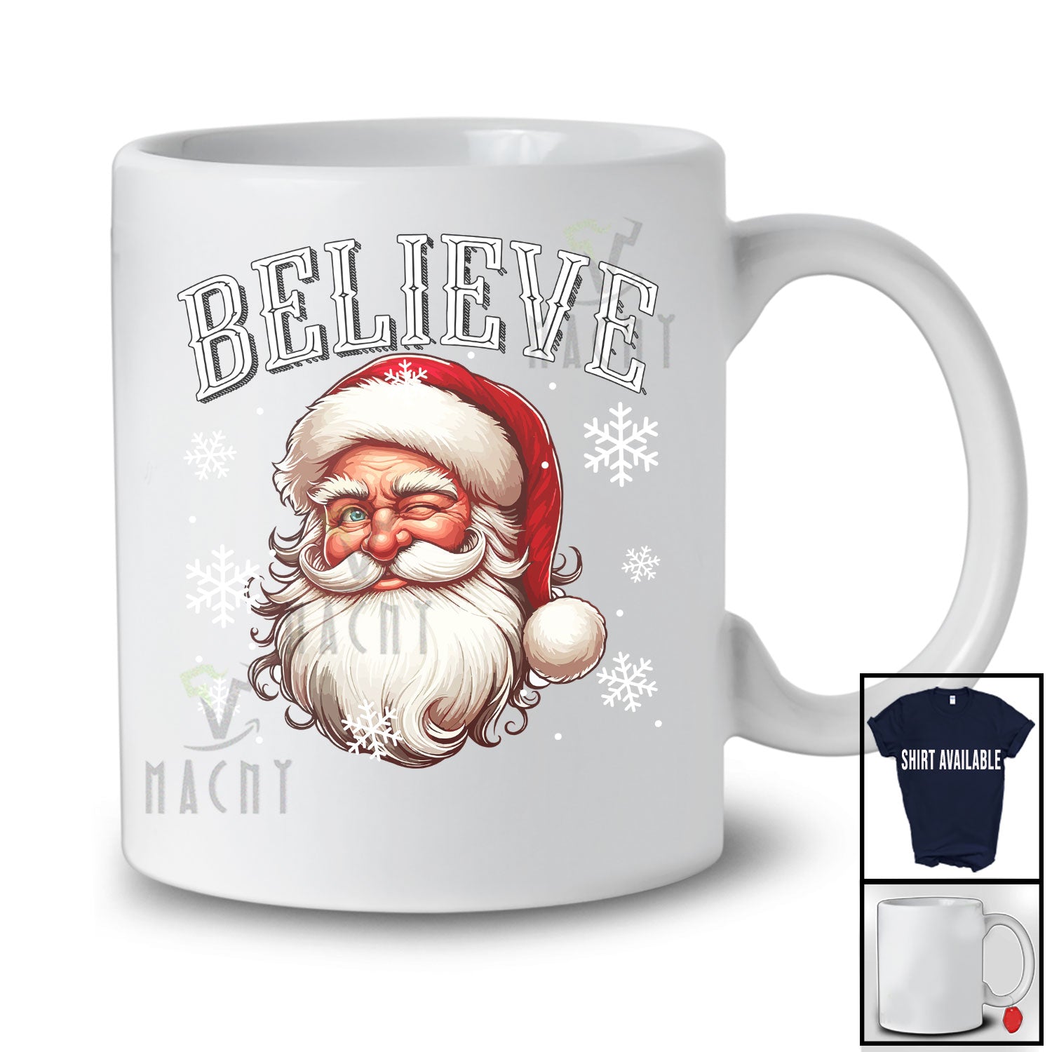 new MacnyStore - Believe; Fantastic Christmas Santa Face; Snowing X-mas Pajama Matching Family Group T-Shirt – Macnystore