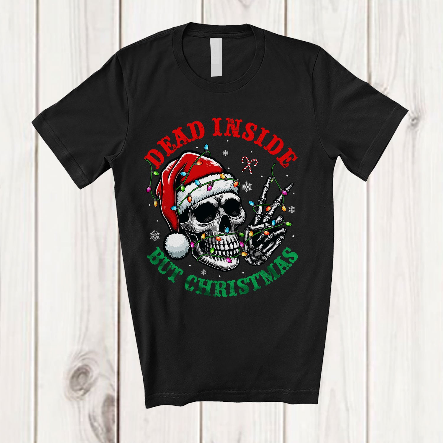Dead Inside But Christmas; Wonderful Christmas Lights Santa Skull; Family Group T-Shirt. This cotton t-shirt is a durable staple product with a classic fit. One of the most popular items, it has a relaxed style made for everyday and casual wear.