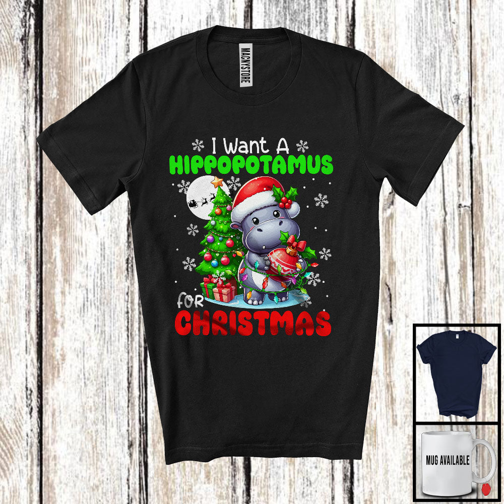 new MacnyStore - I Want A Hippopotamus For Christmas; Lovely X-mas Lights Tree Santa Hippo; Snowing Around T-Shirt – Macnystore