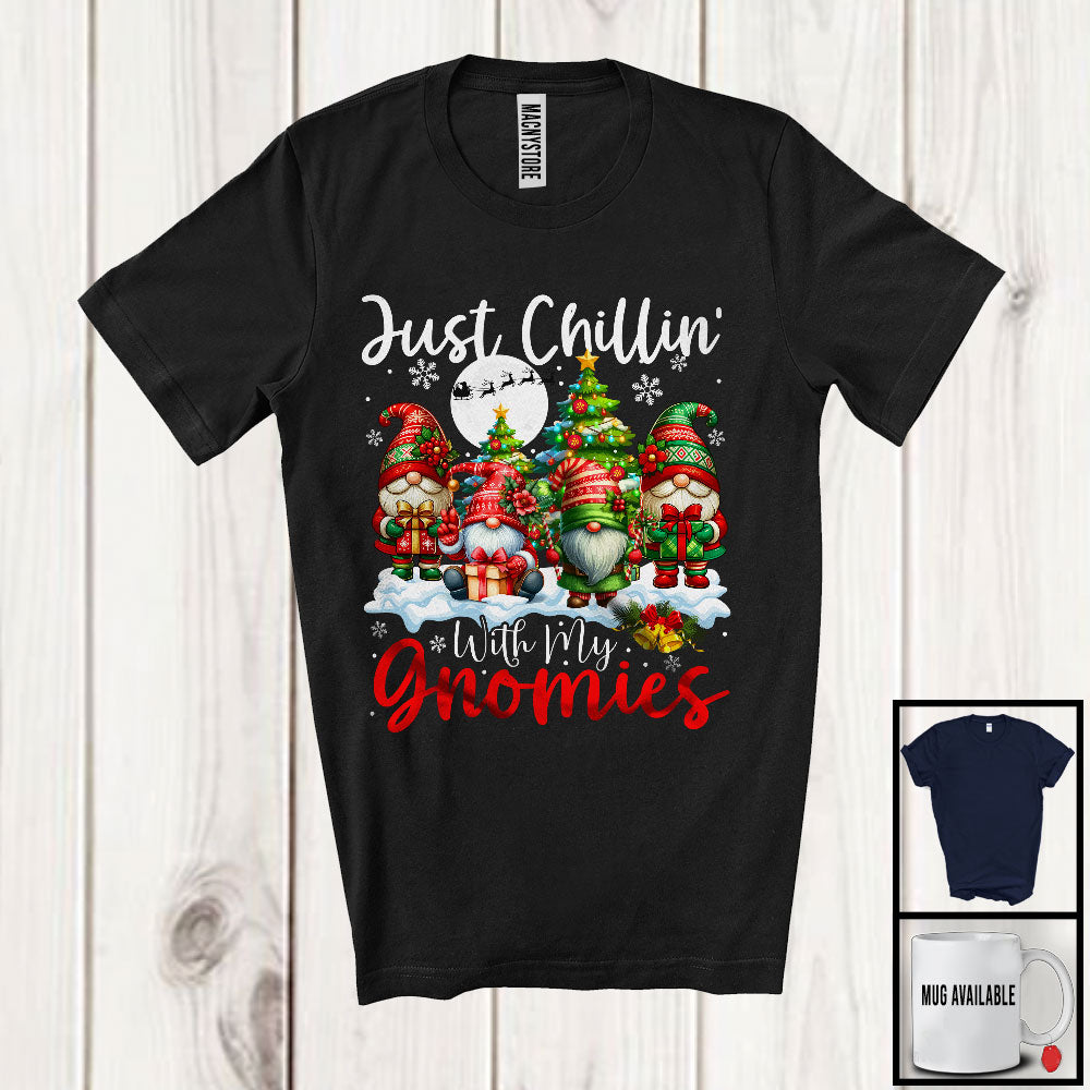 Just Chillin' With My Gnomies; Lovely Christmas Tree Moon Four Gnomes Squad; Snowing T-Shirt