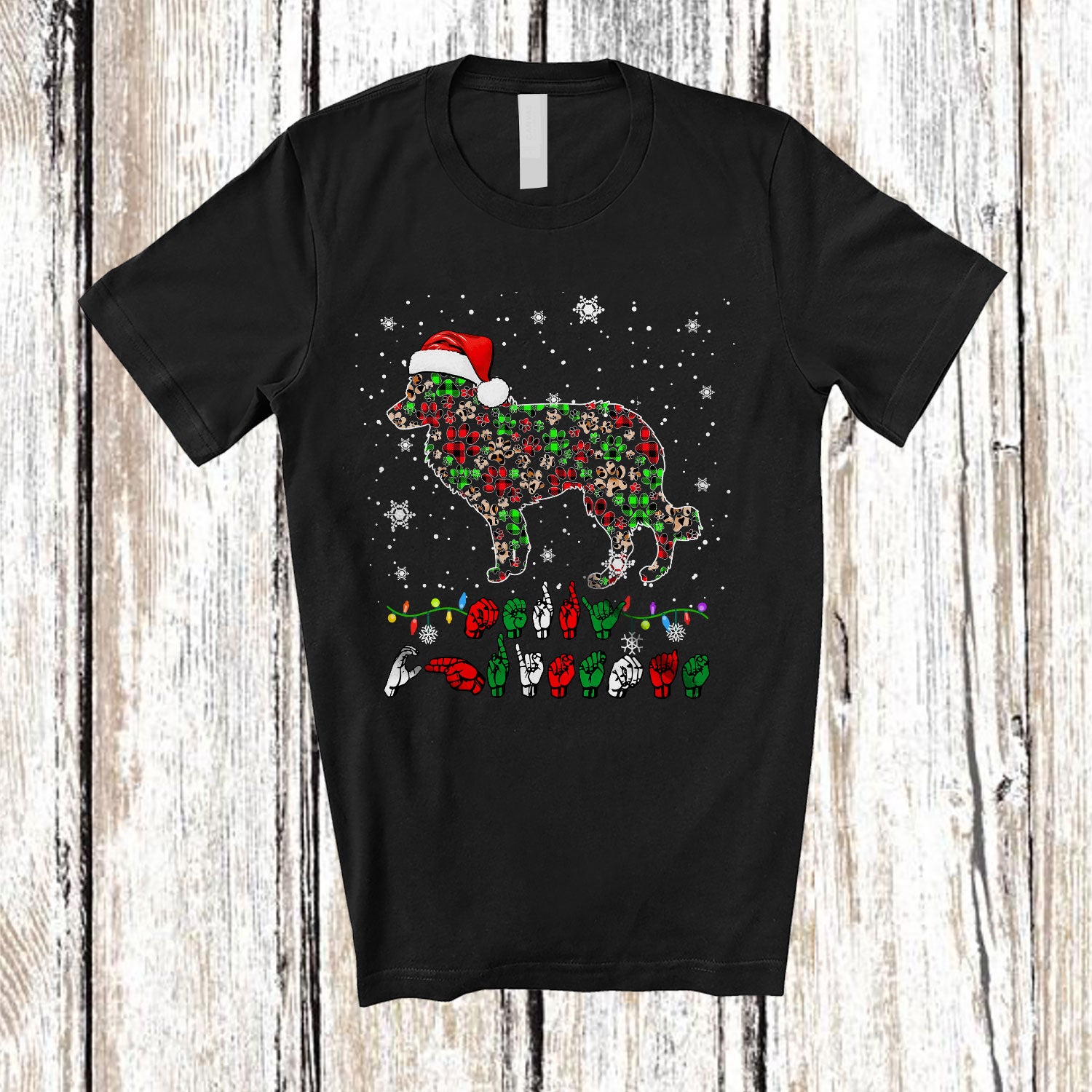 Merry Christmas ASL; Adorable X-mas Border Collie Shape Plaid Paws; Sign Language Family T-Shirt