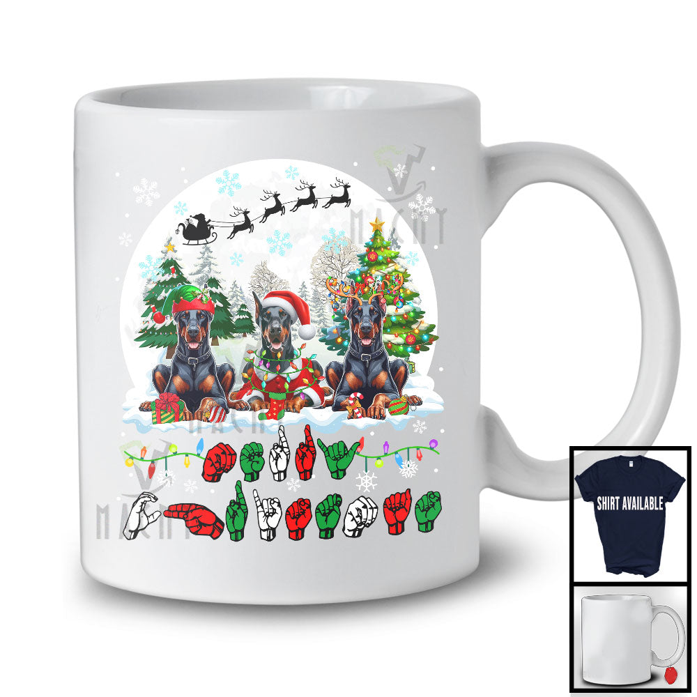 new MacnyStore - Merry Christmas; Fantastic Christmas Moon Three Dobermanns Owner; ASL Sign Language Moon T-Shirt – Macnystore