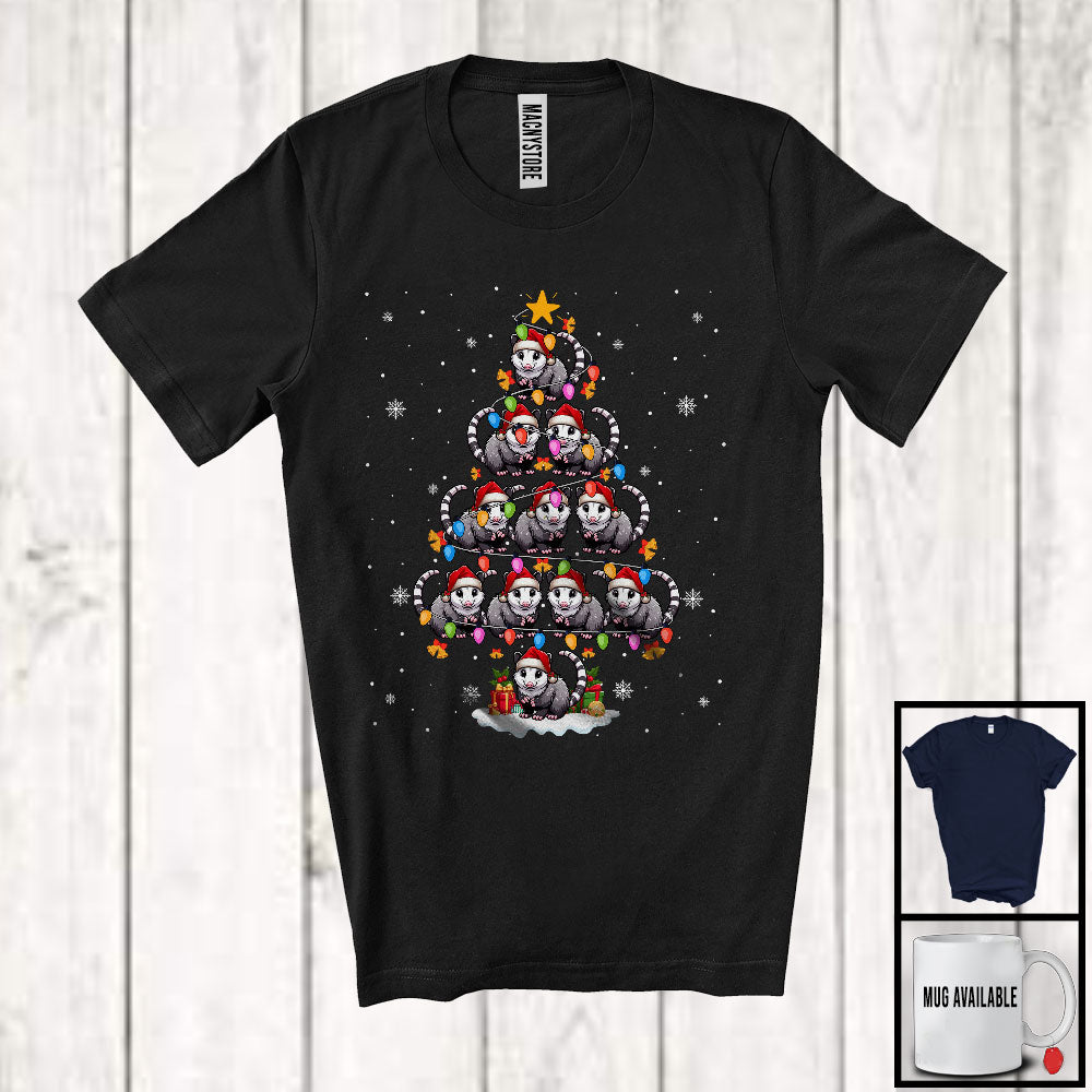 Opossum Santa Christmas Tree; Awesome X-mas Snowing Lights Opossum Owner; Animal Lover T-Shirt