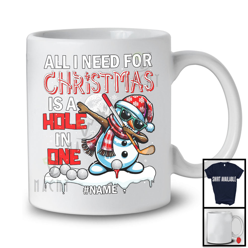 Personalized All I Need For Christmas Is A Hole In One; Joyful Custom Name Snowman Dabbing; Golf Player T-Shirt. This cotton t-shirt is a durable staple product with a classic fit. One of the most popular items, it has a relaxed style made for everyday and casual wear.