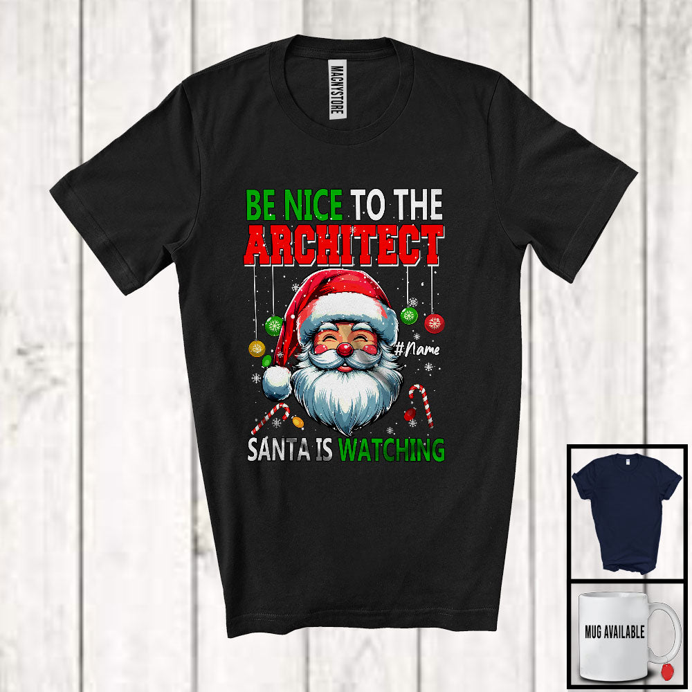 Personalized Be Nice To The Architect; Merry Christmas Santa Face; Custom Name Men Jobs T-Shirt
