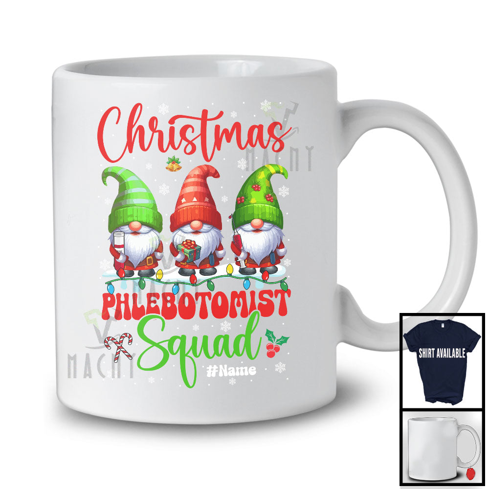 • Personalized Christmas Phlebotomist Squad; Fantastic X-mas Lights Three Gnomes; Proud Jobs T-Shirt. This cotton t-shirt is a durable staple product with a classic fit. One of the most popular items, it has a relaxed style made for everyday and casual wear.